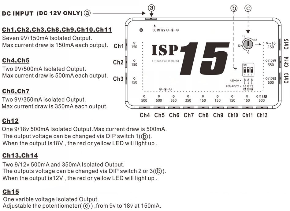 - Each of the ISP15 supplies 15 outputs that are fully isolated