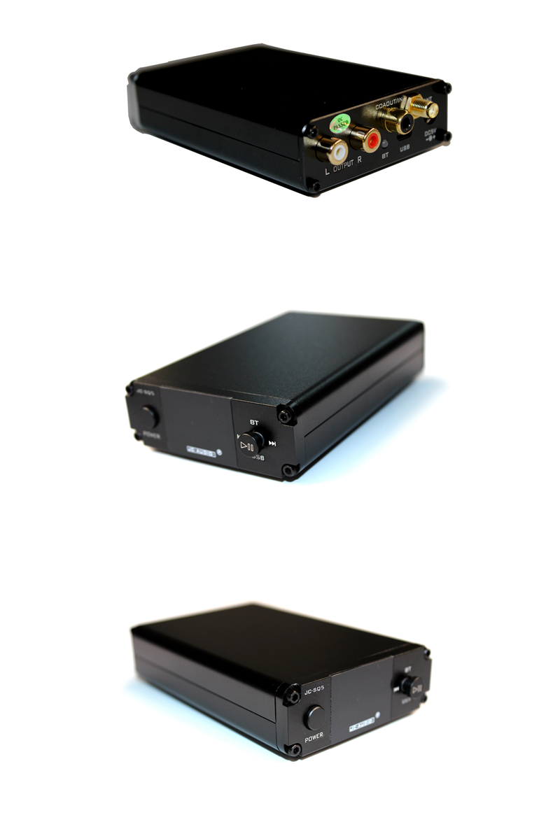 JC-SQ5 adopts concise, novel and unique appearance design, with coaxial, USB and wireless Bluetooth signal input. Integrates soft light OLED display, MCU software controls input mode switching, previous song, next song, play/pause, switch on and off and other functions. With current state memory function, automatic power-on function when power on. The display can show the current input mode and the current mode signal sampling rate. Very convenient to use. It adopts CSR8675 Bluetooth solution and ESS9038Q2M decoder chip. Three dual op amp designs, two dual op amps are responsible for the filter output of each channel, and one dual op amp is responsible for amplifying the output. The power supply of op amp all adopts positive and negative 15V dual voltage power supply, wide dynamic frequency response. Bluetooth supports for AAC, SBC, APTX, APTX-LL, APTX-HD, LDAC lossless transmission protocols. Bluetooth supports up to 24Bit/96KHz sampling rate, surpassing CD tone. The decoder helps you build a mobile HIFI platform. We sincerely hope that the excellent sound quality of JC-SQ5 will bring you a different listening experience.