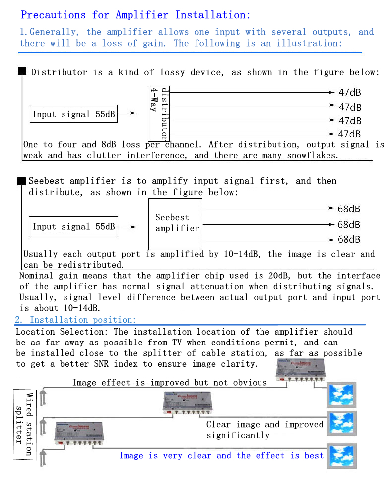 2.The amplifier is not omnipotent, it is related to the environment you use. The installation effect will be different in each home, and we cannot promise the effect of your home use. Thank you for your understanding!