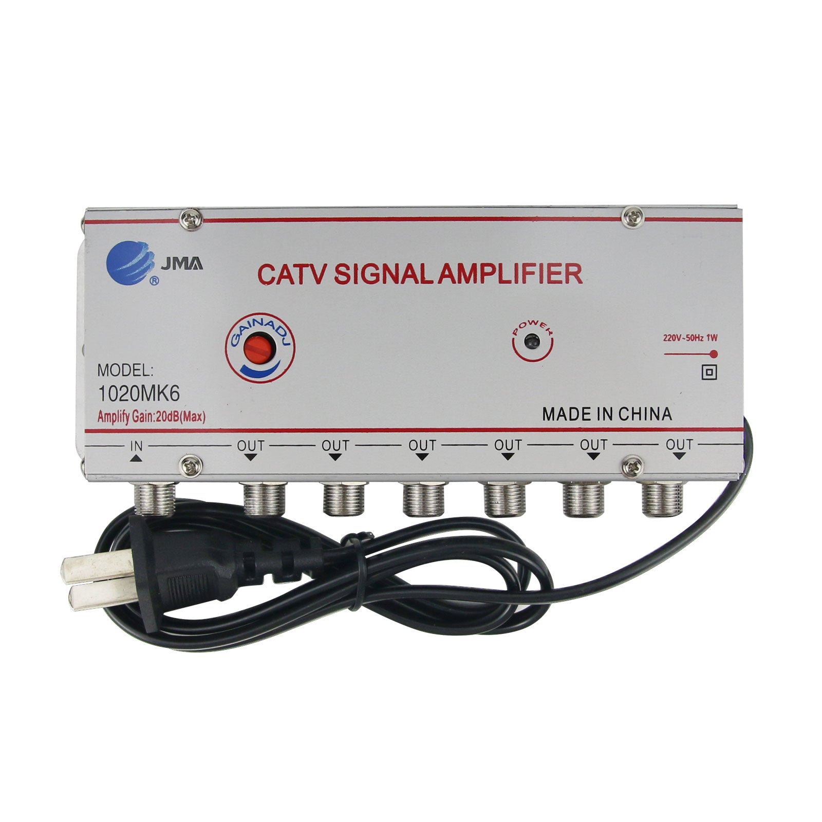 JMA 1020MK6 CATV Signal Amplifier Home Cable TV Amplifier 1 Input 6 Outputs Nominal Gain 20DB