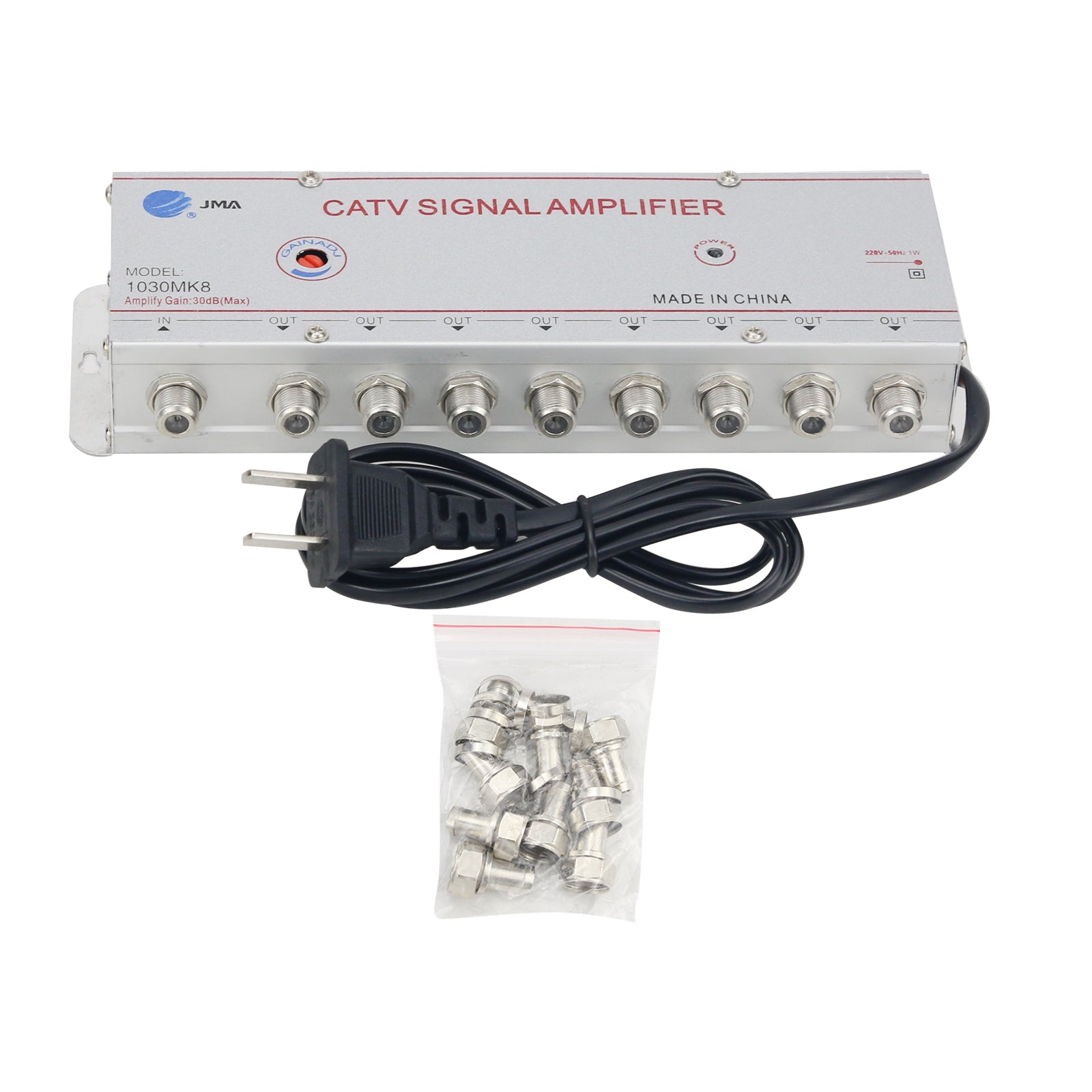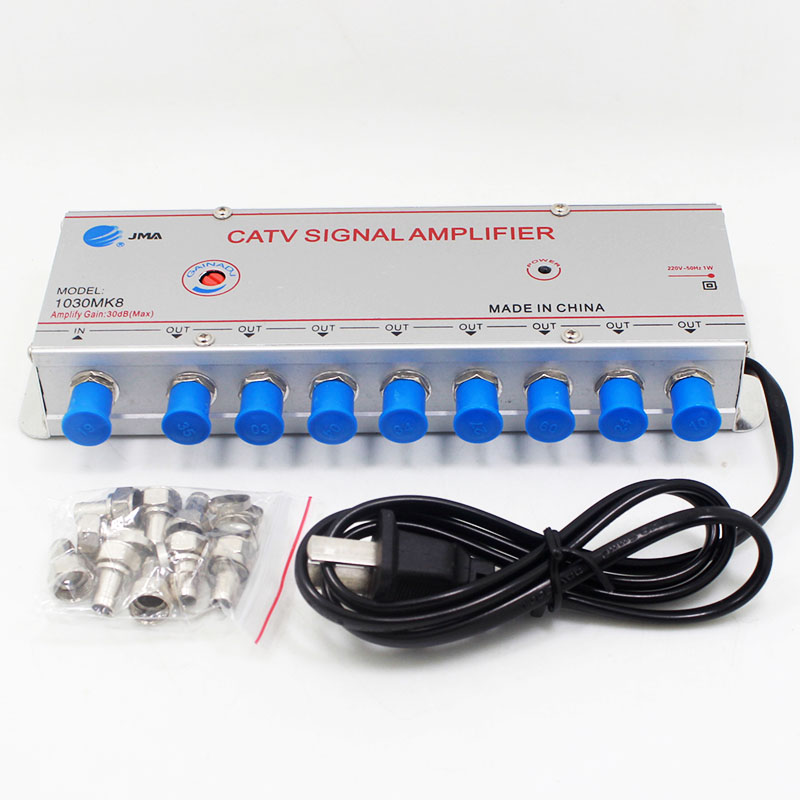 JMA 1030MK8 Cable TV Signal Booster CATV Signal Amplifier 1 IN 8 OUT 30DB Gain (220V 50Hz)