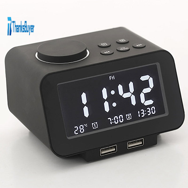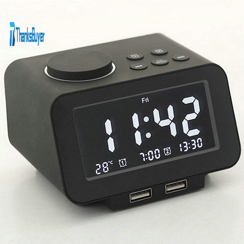 K8 Dual Alarm Clock Radio FM Desktop Snooze Alarm Clock USB Charging Display Real Time Temperature