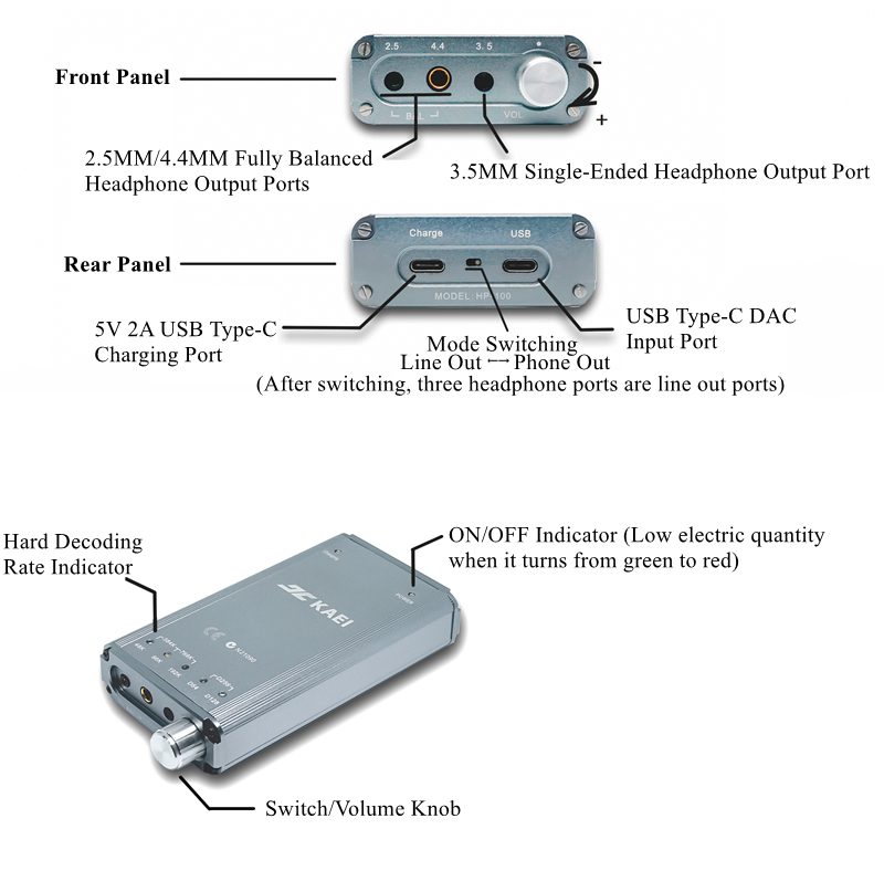KAEI HP-100 Portable Headphone Amplifier DAC Fully Balanced DAC Hifi Decoder Dual 9038Q2M Silver
