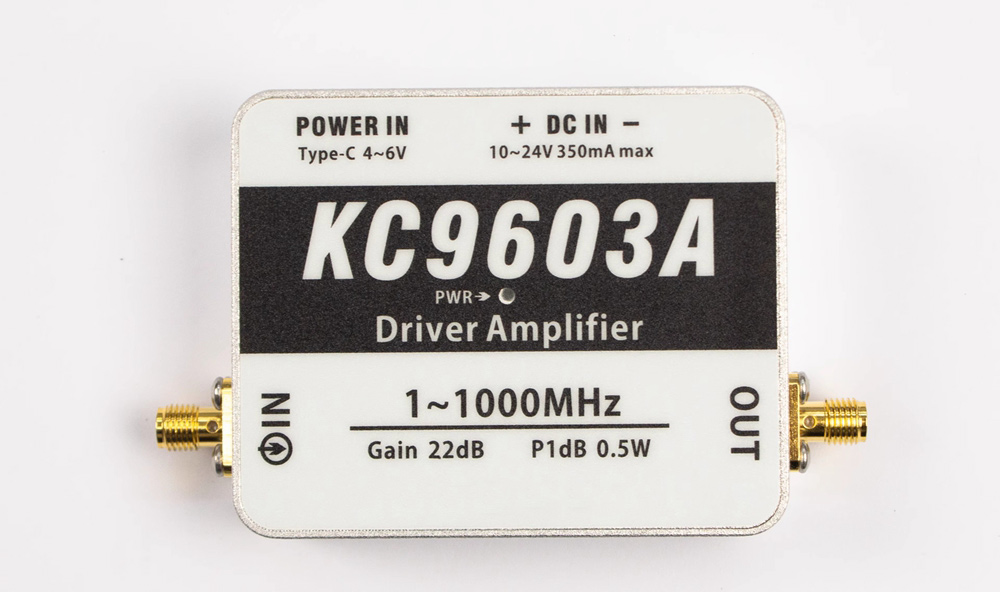 KC9603x is a series of medium power amplifiers for experimental use. All the experimental amplifiers support type-c power supply and 12V power supply. It is convenient to use in various experimental scenarios due to a built-in regulated power supply. At present, three models are launched. They are KC9603A 1MHz-1GHz, KC9603B 100MHz (nominal 500MHz)-8GHz, and KC9603C 6GHz-18GHz. Their output power is above 0.2W and KC9603A can reach 0.5W.