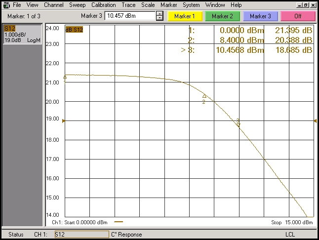 This is the actual measured compression point. Cursor readings are input power. And output power needs to be added to the gain shown on the right.