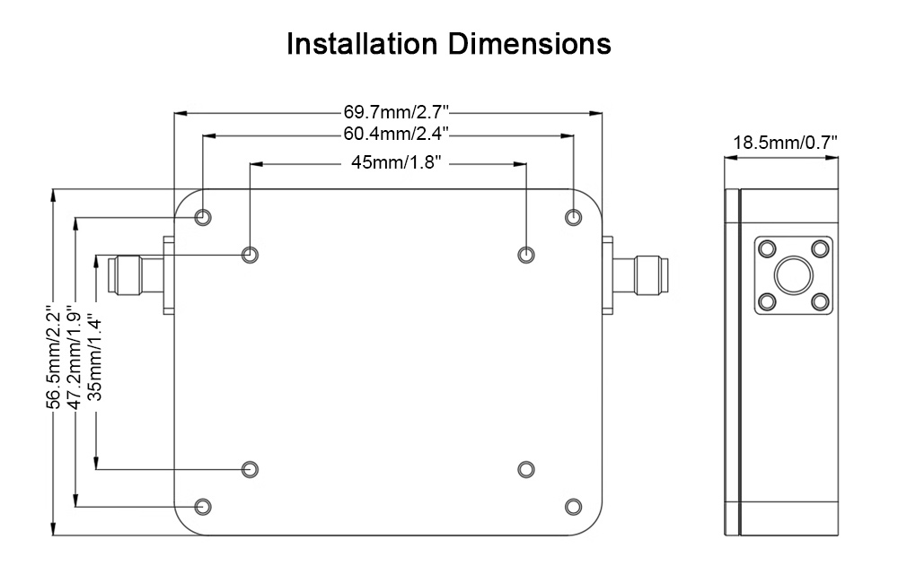 This product is suitable for driving amplification and is used in various applications that require slightly higher RF power, such as extending the signal transmission distance. With low noise, KC9603A is also suitable for pre-amplification that requires high dynamics, but it is not waterproof, and it is recommended to choose KC9605A for outdoor use.