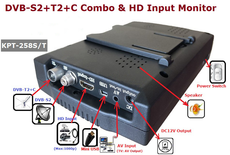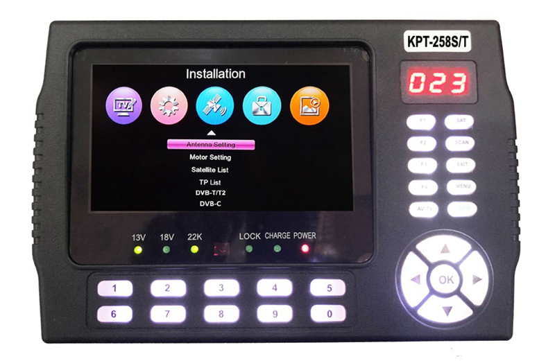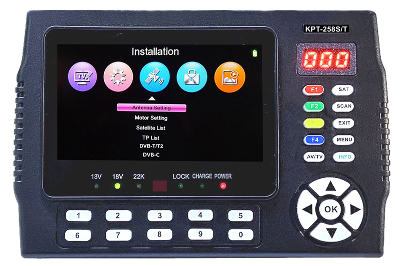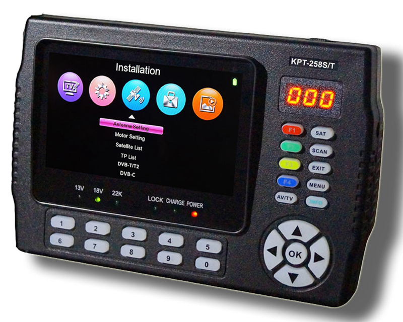 KPT-258S/T Digital Satellite Finder Meter & HD Monitor with 4.3" IPS (S2 + T2 + C Combo + HD + AV)
