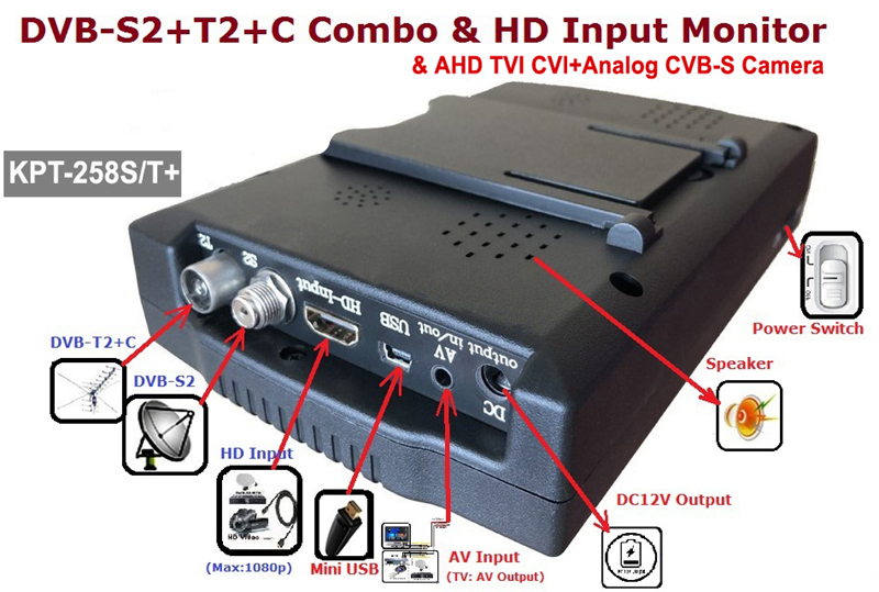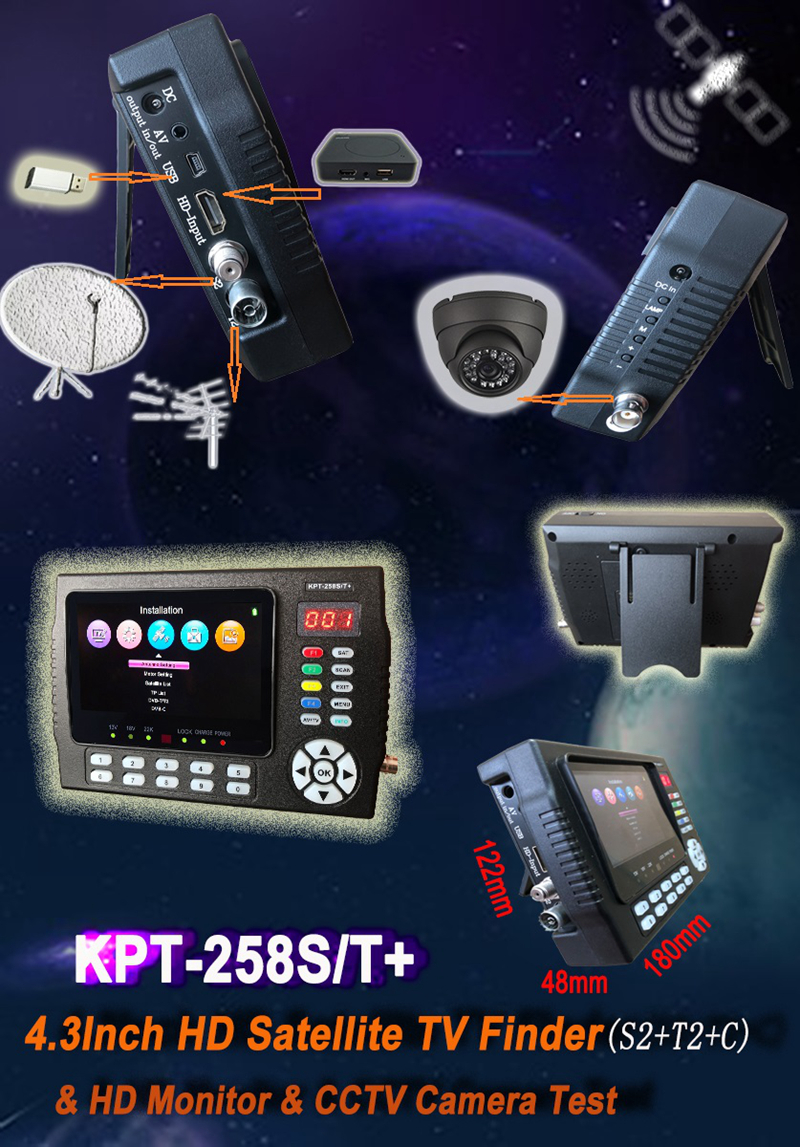 KPT-258S/T+ Satellite Finder HD Monitor CCTV Camera Tester AHD Input (S2 + T2 + C Combo + HD + AV)