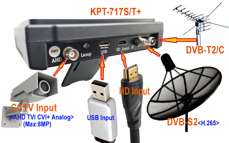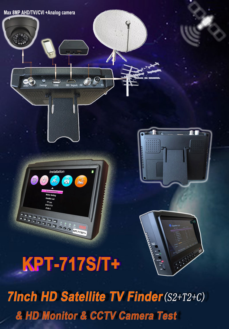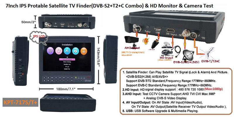 KPT-717S/T+ 7" LCD HD Satellite Finder & HD Monitor & CCTV Camera Tester Supporting AHD Input