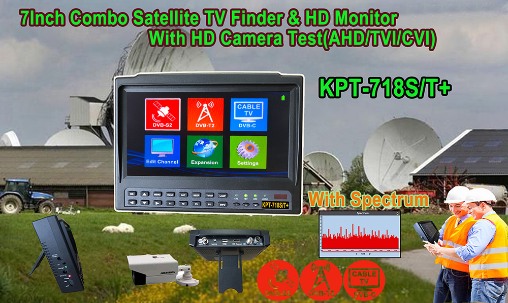 KPT-718S/T+ 7" Combo Satellite Finder (S2+T2+C) CCTV Camera Tester Spectrum Analysis 8MP AHD Input