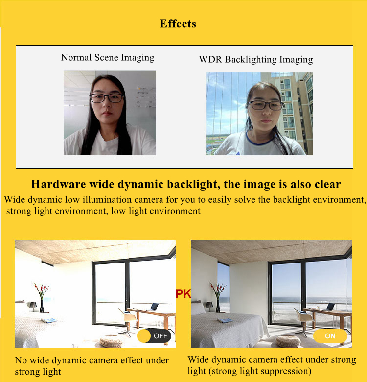 - 105DB wide dynamic, suitable for complex light environment. Especially suitable for high contrast environment