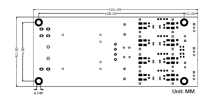 - PCB size: 122 x 52 x 39mm/4.8 x 2 x 1.5" (LxWxH)