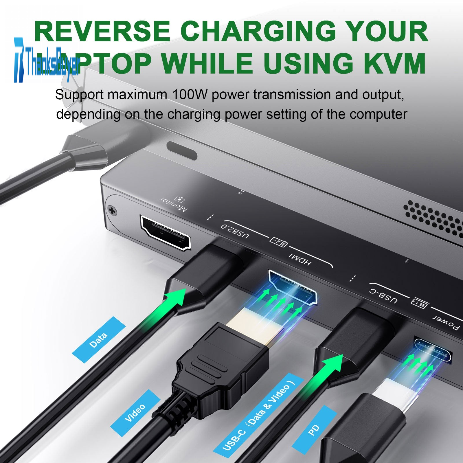 - Supports max 100W power delivery (USB-C)