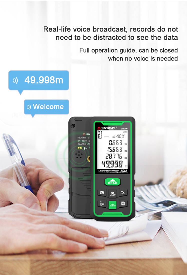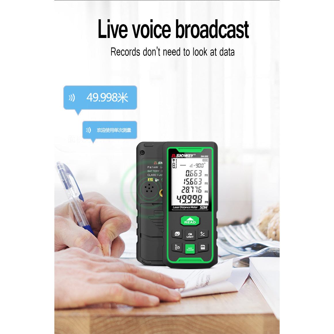 Laser Distance Meter 50M Digital Laser Rangefinder Voice Broadcast for Outdoor Indoor Uses SW-50G