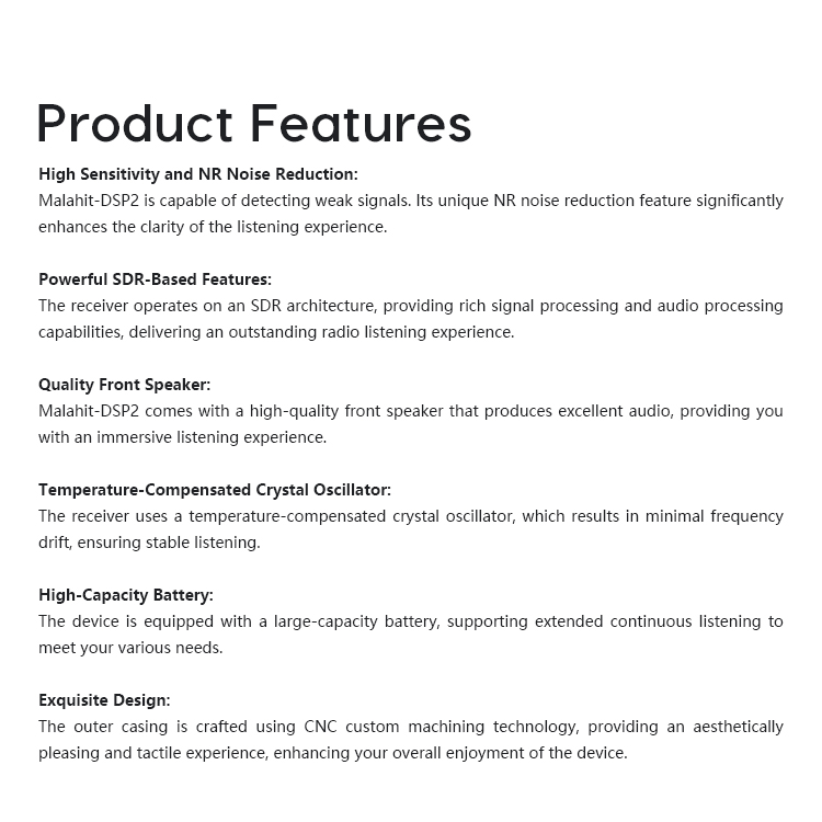 - Malahit-DSP2 is a high sensitivity broadband radio receiver based on SDR technology. The receiver adopts an SDR architecture with powerful functions and unique NR noise reduction function, resulting in excellent listening performance.