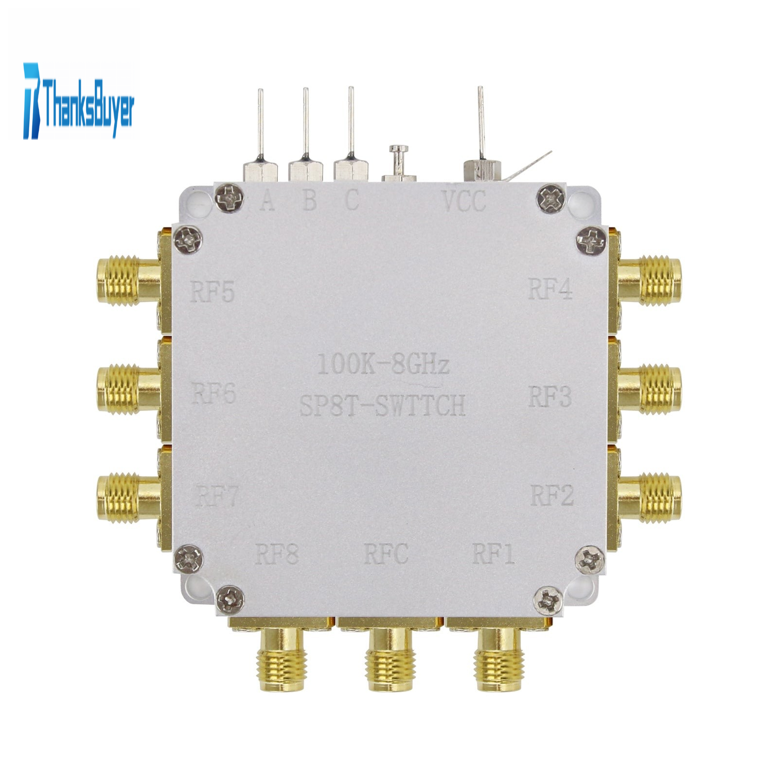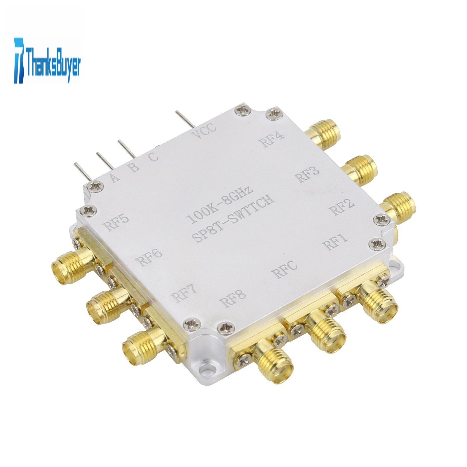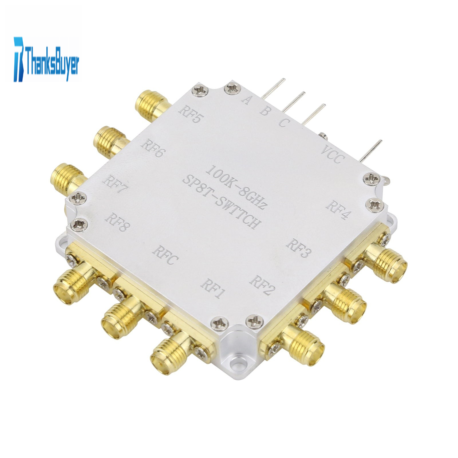 LF-8GHz 100K-8GHz SP8T Switch RF Switch with Metal Shell High Isolation Low Insertion Loss