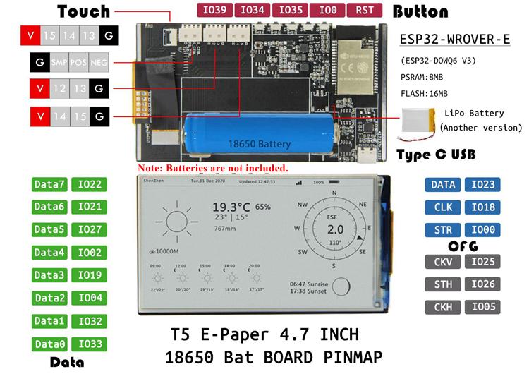 LILYGO T5 4.7" E-Paper Display 18650 Holder ESP32 V3 16MB FLASH 8MB PSRAM WIFI/Bluetooth For Arduino