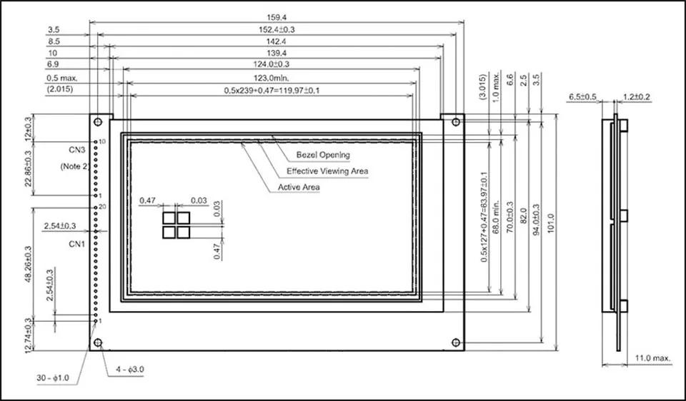 - Outline Dimension: 159.40 (W) x 101.00 (H) x 11.00 (T)mm