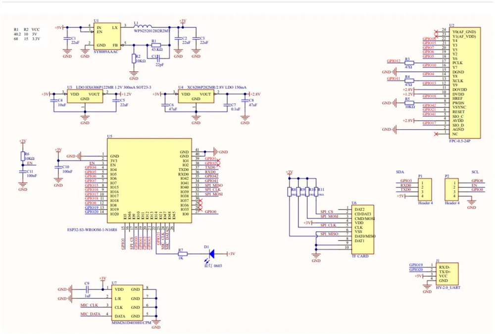 - Based on the ESP32-S3-WROOM-1-N16R8 module, supports WiFi.