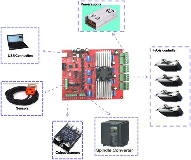 1. Support for 4-axis linkage, you can connect four stepper motor drives or servo drives.