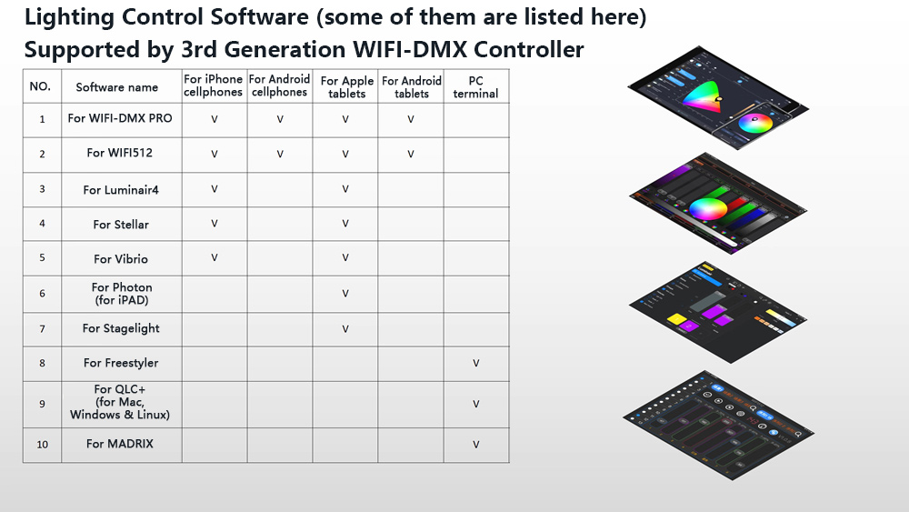 - Configuration software: For WIFI-DMX PRO and WIFI512