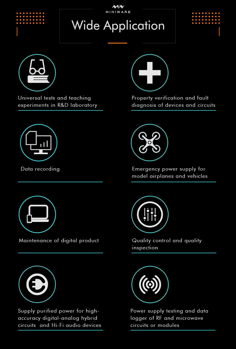 - Supply purified power for high-accuracy digital-analog hybrid circuits and Hi-Fi audio devices