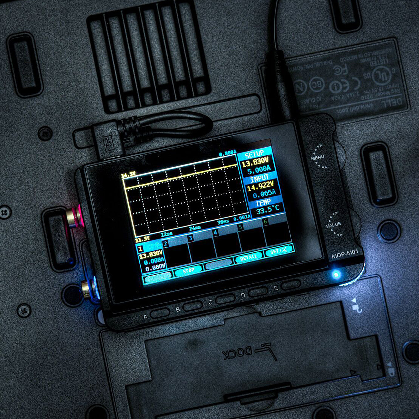 MDP-M01 Display Control Module: Equipped with a 2.8-inch TFT screen, it can display the voltage-current waveform in real time, support data statistics, and automatically pair with and control six sub-modules (digital power modules), with dual thumb wheels and 90-degree scrolling user-friendly design.