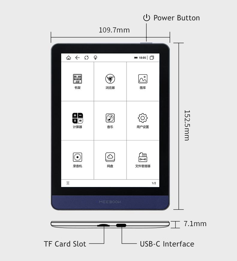 Meebook M6 E-book Reader 6-inch E-INK HD 300 PPI 4-Core 1.8GHz CPU 3+32GB Memory Compatible with Android 11 System