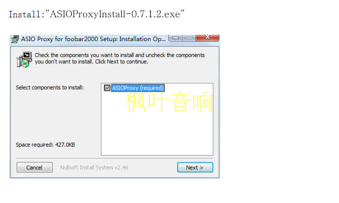 2.Install "ASIO Proxy Install-0.7.1.2.EXE file" in the folder "foo_input_sacd-0.7.1" in plugin package, as shown below.