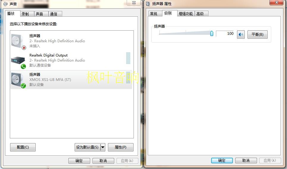 When playing DSD songs, you need to adjust the system volume for XMOS sound card to 100 to have sound, as shown below.