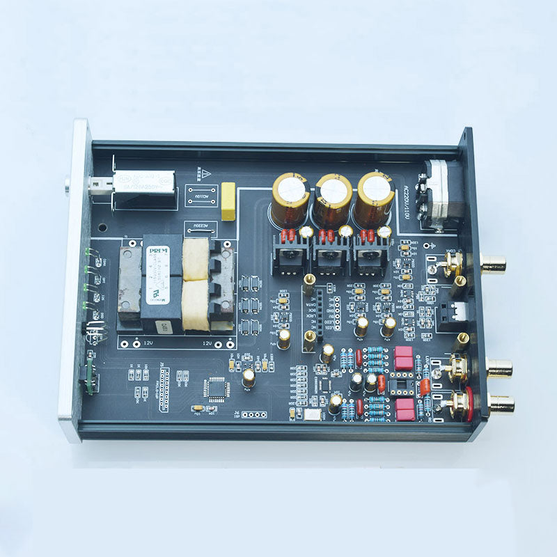 - The PCB board design is reasonable and the layout is tight. Powered by power frequency transformer and linear stabilized power supply, audiophile capacitors and resistors precisely welded