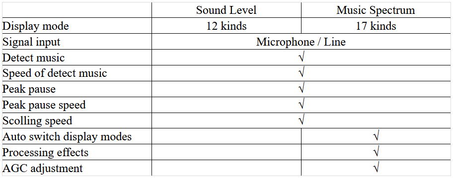 - As an analog music spectrum, supporting display sound level and music spectrum
