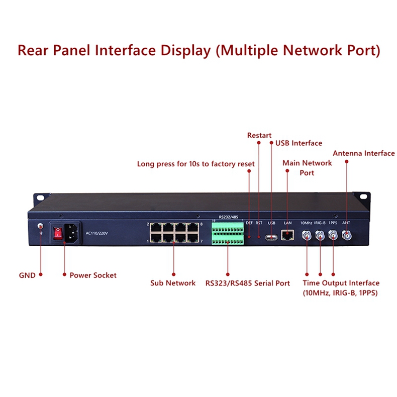 - Supported interface: NTP/PTP/1PPS/IRIG-B bit/10MHz/TOD
