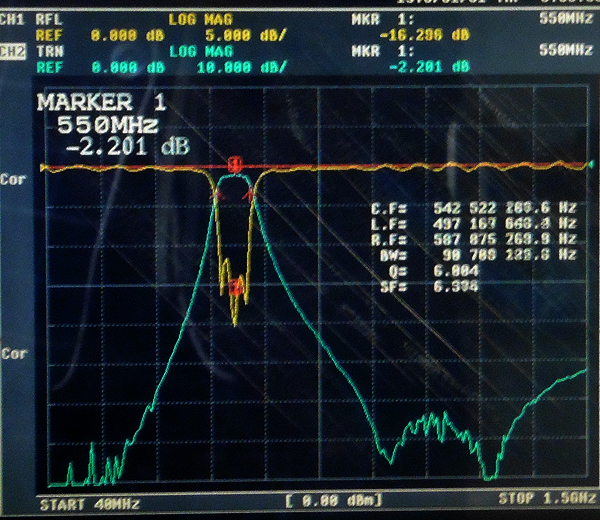 - Center frequency insertion loss: 2.0~2.5 dB at 550 MHz