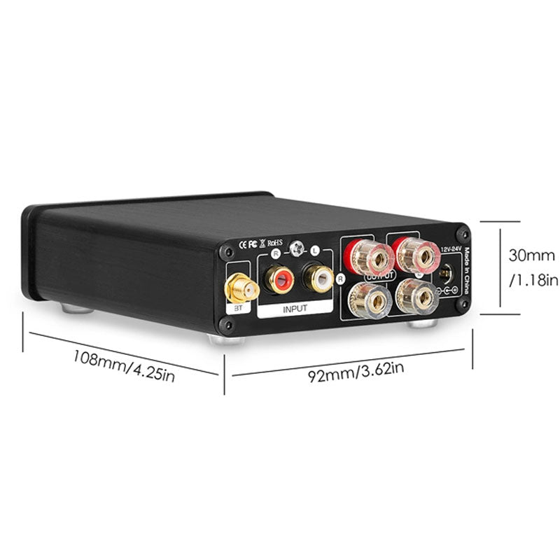 - Maximum output power: 100W+100W (above 24V at 8A / 4ohm)