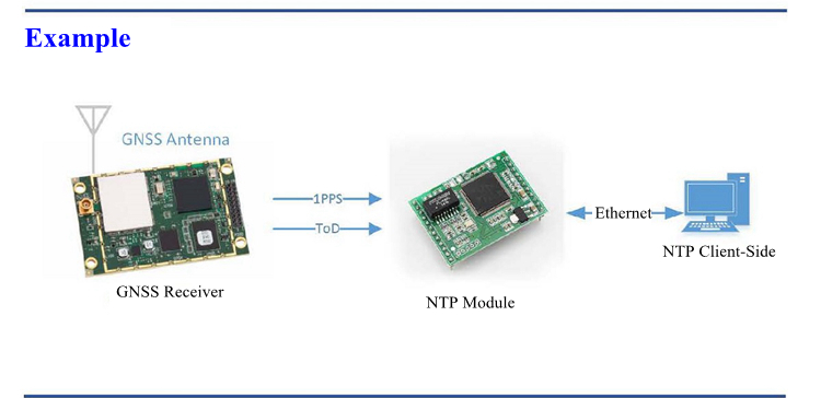 The NTP module is a time server based on NTP (v2, v3, v4)/SNTP protocols. It receives 1PPS+ToD time information from receiver or an external reference source and transmits the information over the network. In this way, devices that require time signals in the network, such as computers, controllers, can synchronize with standard clock signals to implement network timing functions.