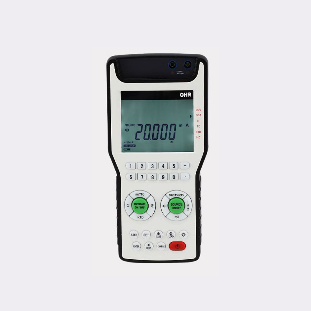 OHR-B00 Signal Generator is a multifunctional and high-precision portable signal source. It can be used to output a variety of industrial signals, and it supports many types of signals such as current, voltage, resistance, frequency, thermocouple and RTD. The highest precision of it can reach 0.01%. It is a necessary measurement instrument for industrial sites, labs and the manufacturers of different kinds of instruments.
