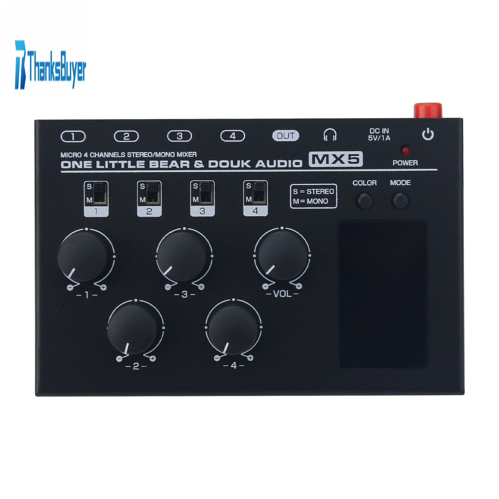 * 4-channel mixer supports stereo and mono: MX5 audio mixer with 4 groups of 6.35mm/3.5mm inputs and 1 group of 6.35mm/3.5mm output. It is compatible with most audio devices such as CD players, computers, cellphones, preamplifiers and amplifiers. Each channel supports independent mono/stereo switches to mix different audio signals to satisfy more mixing needs.