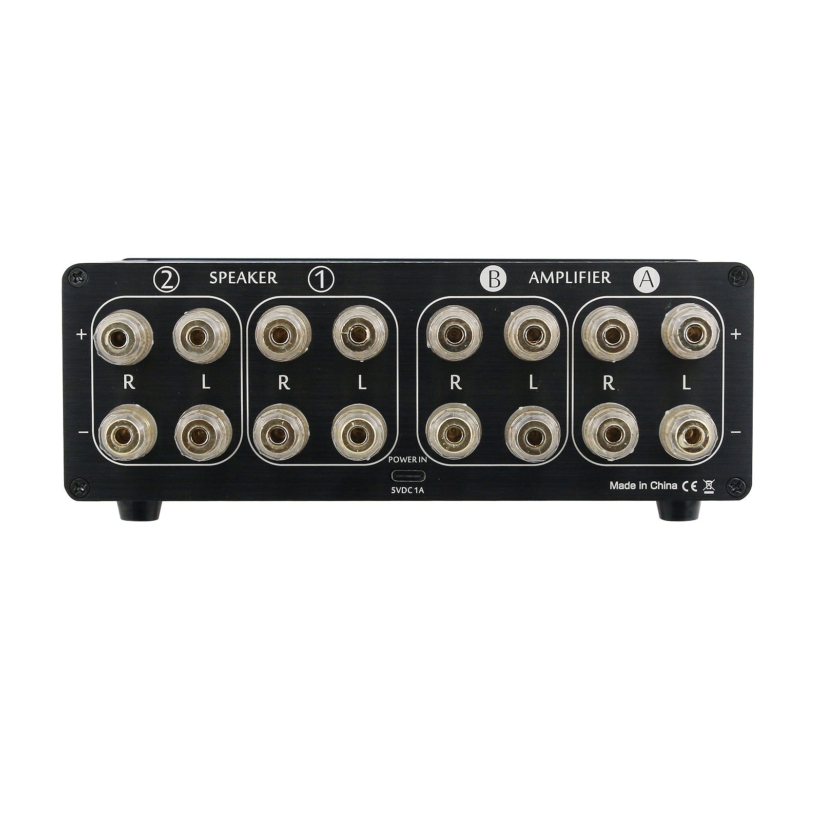 - As an audio switcher, easily to switch between two amplifiers and 2 pair of speakers, no need to plug in and out cables repeatedly to avoid wearing the contact point of the sockets.