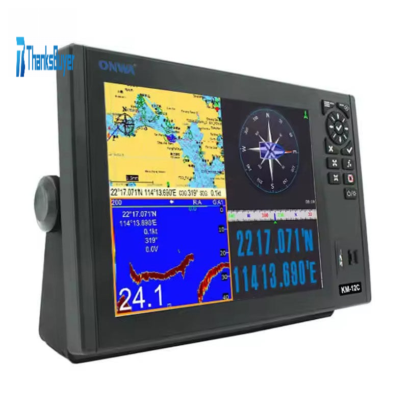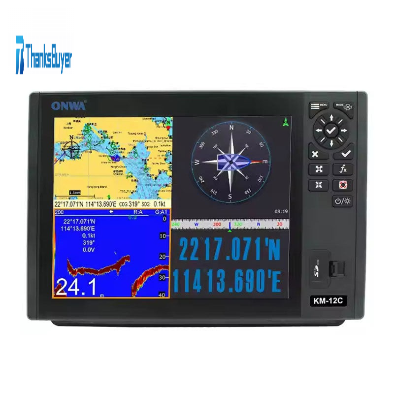 ONWA KM-12X/KM-12C 12-inch Marine GPS Chart Plotter Echo Sounder Fish Finder with AIS Transponder or Sea Map