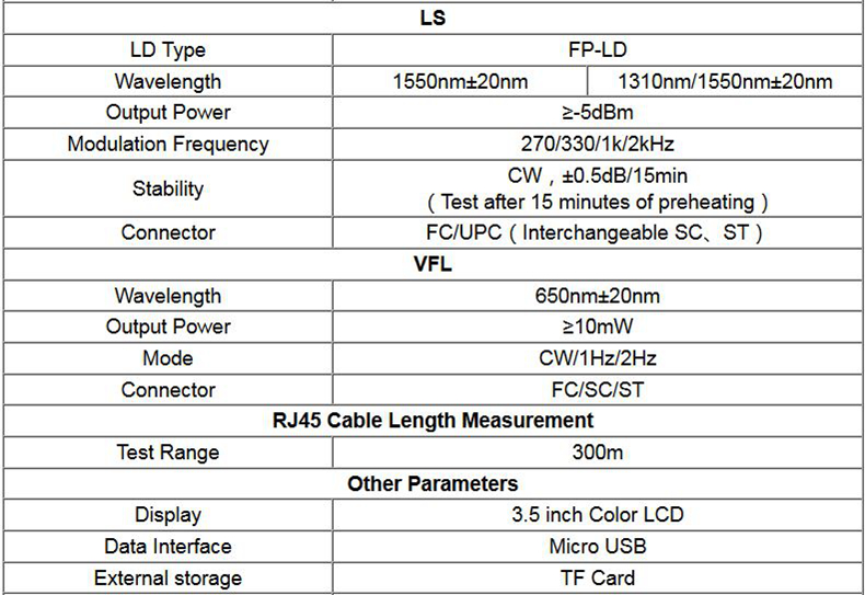 Optical Time Domain Reflectometer w/OTDR OPM LS VFL RJ45 Cable Order Flashlight 1310nm/1550nm±20nm