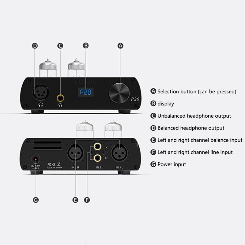 P20 Full Balanced Headphone Amplifier Tube Headphone Amp With 6N3 Tubes Aluminum Alloy Shell Black