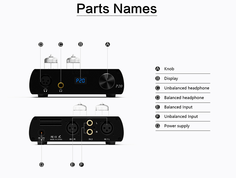 P20 Full Balanced Headphone Amplifier Tube Headphone Amp With 6N3 Tubes Aluminum Alloy Shell Red
