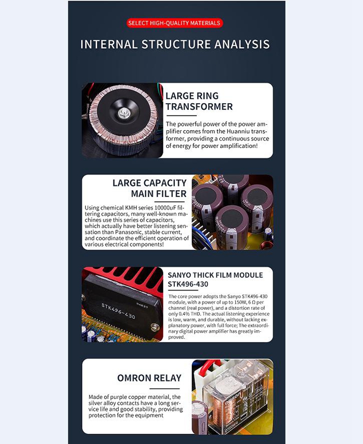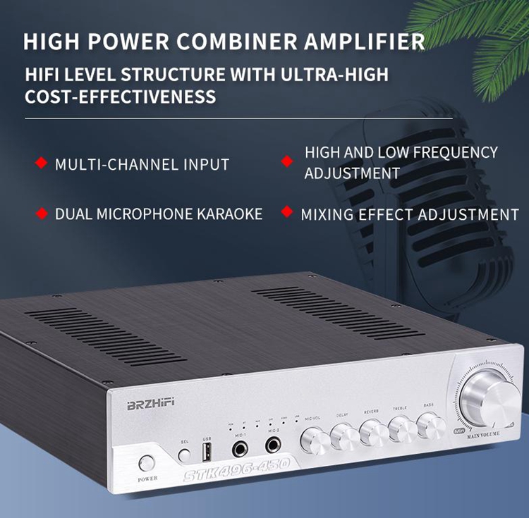 PA-50X High Power Stereo Combined Audio Power Amplifier Bluetooth5.0 Multi-channel Input Support APP Control