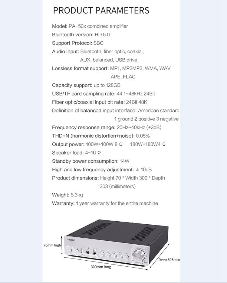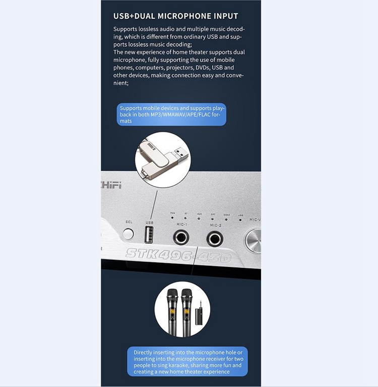 - USB flash drive/TF card sampling rate: 44.1 - 48kHz, 24bit