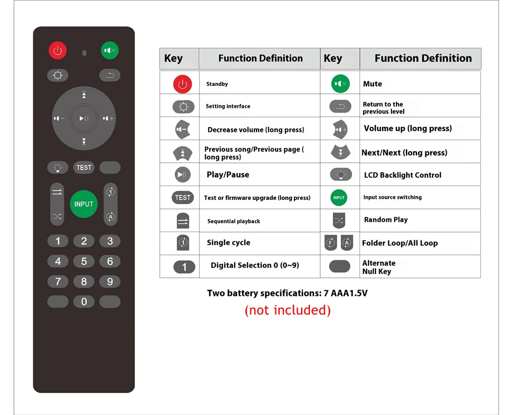 - Operation control: support input mode switch/volume adjustment/setting/song selection through buttons and remote control