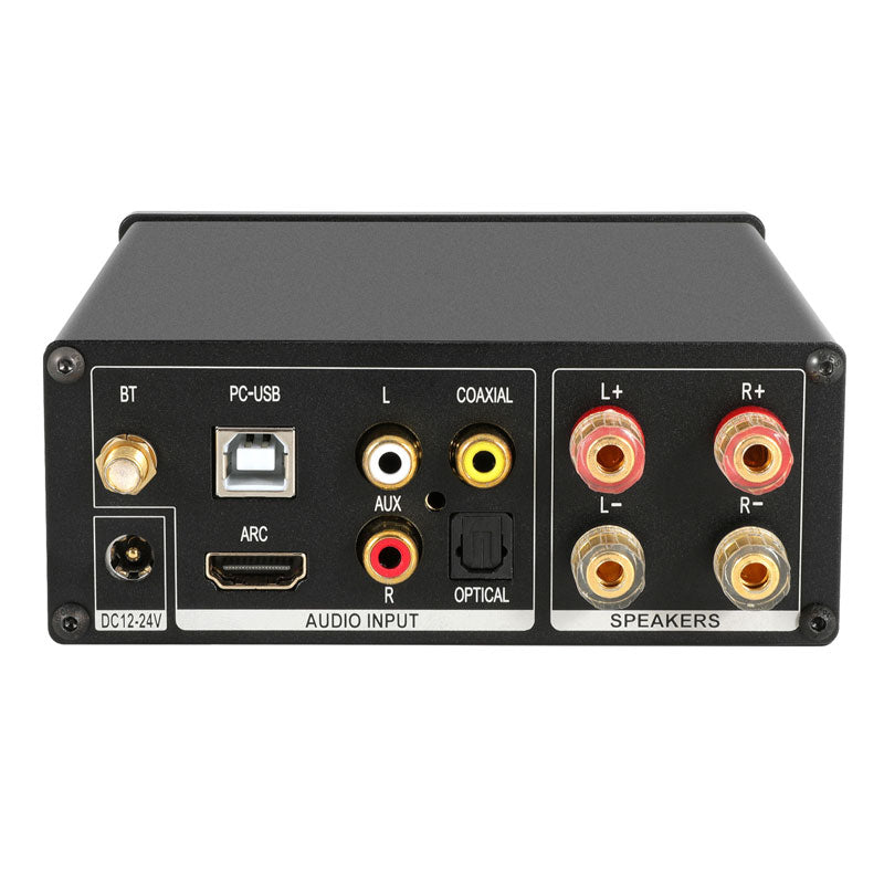 - Two digital amplifier chips, one chip for each channel, directly drive 3-8ohms passive speakers; Adopting digital DSP technology, fully digital transmission, eliminating background noise; The signal-to-noise ratio (SNR) is as high as 114dB; the total harmonic distortion+noise (THD+N) is ≤ 0.03%; Small signal bass enhancement technology.