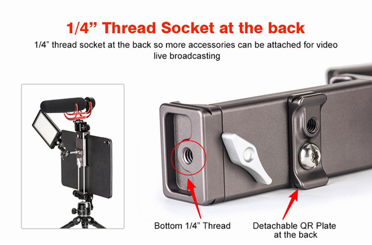 Note: Tablets for iPad, ball heads, tripods, mobile phones, cameras, fill light, microphone, cold shoe adapter, and other items pictured are not included, for demonstration purposes only.