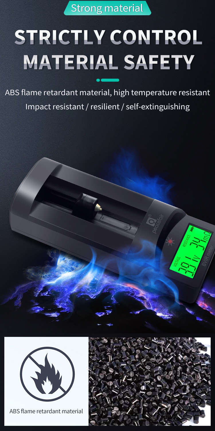 - This tester use four wire principle to test battery voltage and internal resistance with high precision, and is powered by built-in rechargeable standby battery; The innovative built-in four wire battery measurement cabin structure, high integration, small volume and convenient carrying. It is suitable for mobile battery detection.