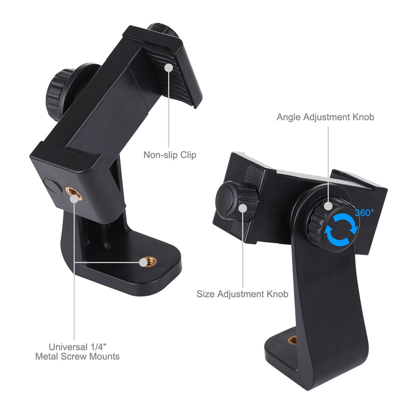 7. Easy to install: There are two option to use the phone clip: 1. Screw directly to the tripod with pivoting arm, being able to 360 degrees to rotate. 2. Remove the clip from pivoting arm and then mount on a tripod.